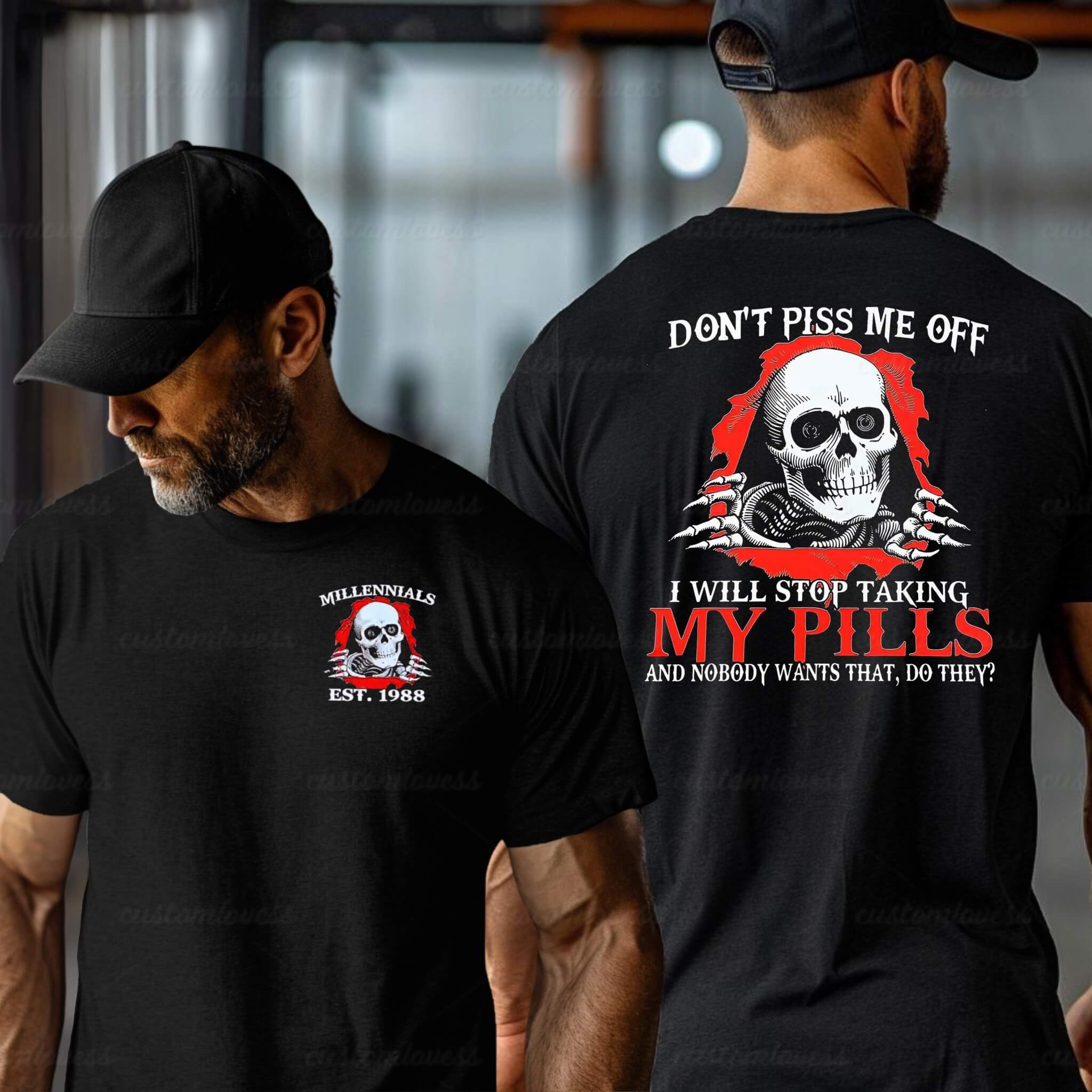 Boldly printed with “Don’t piss me off. I’ll stop taking my pills… and nobody wants that, do they?”, this shirt is made for the humor-loving rebels, grumpy dads, chaotic moms, or anyone who's just done with everyone's nonsense.