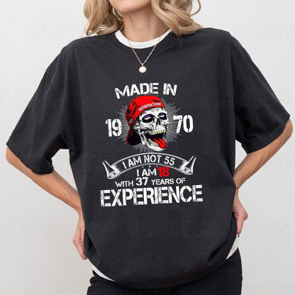 The Custom Made In 19XX Skull T-Shirt is the perfect blend of edgy and nostalgic. Designed for those who take pride in their birth year, this tee features a bold skull graphic alongside your custom year, making it a unique statement piece.