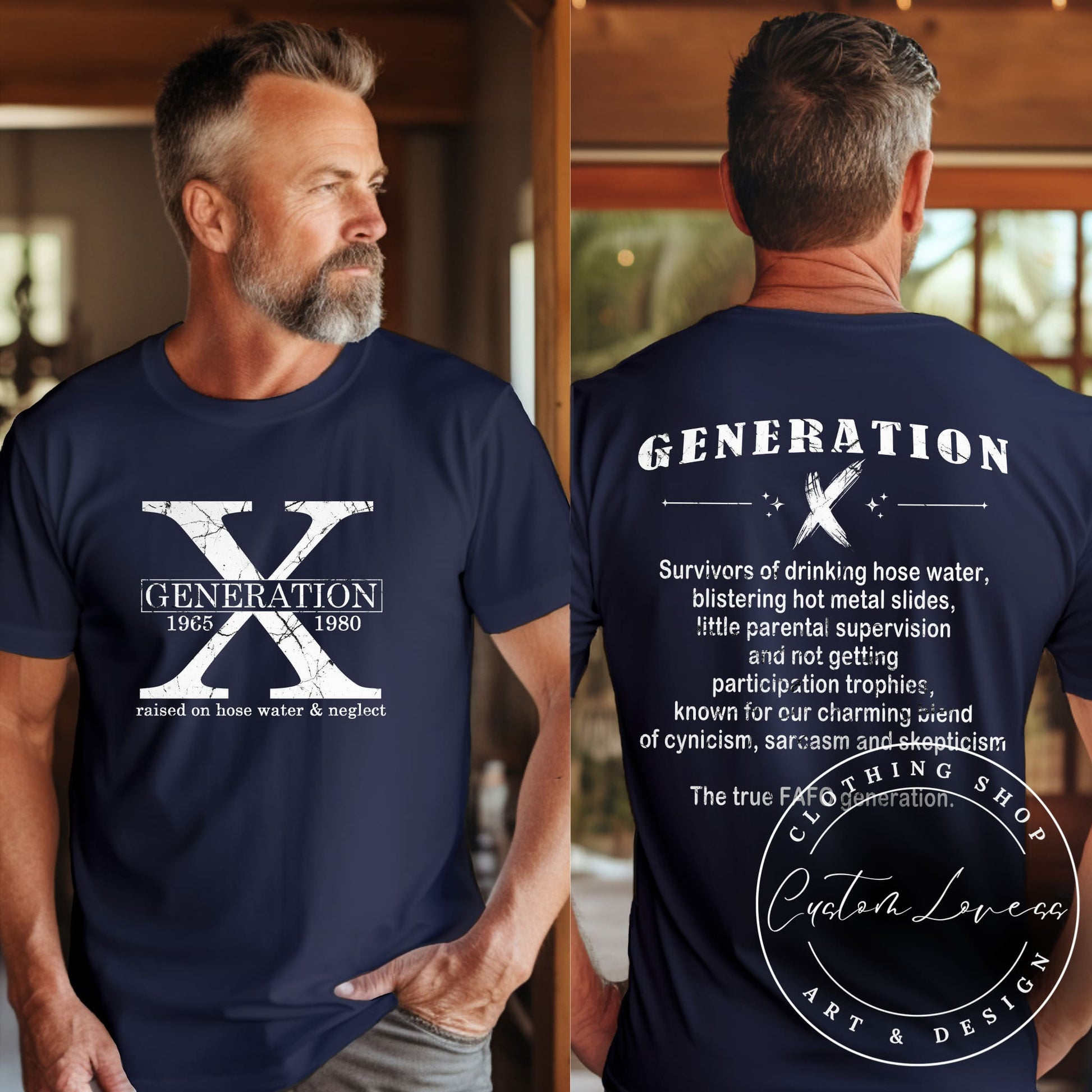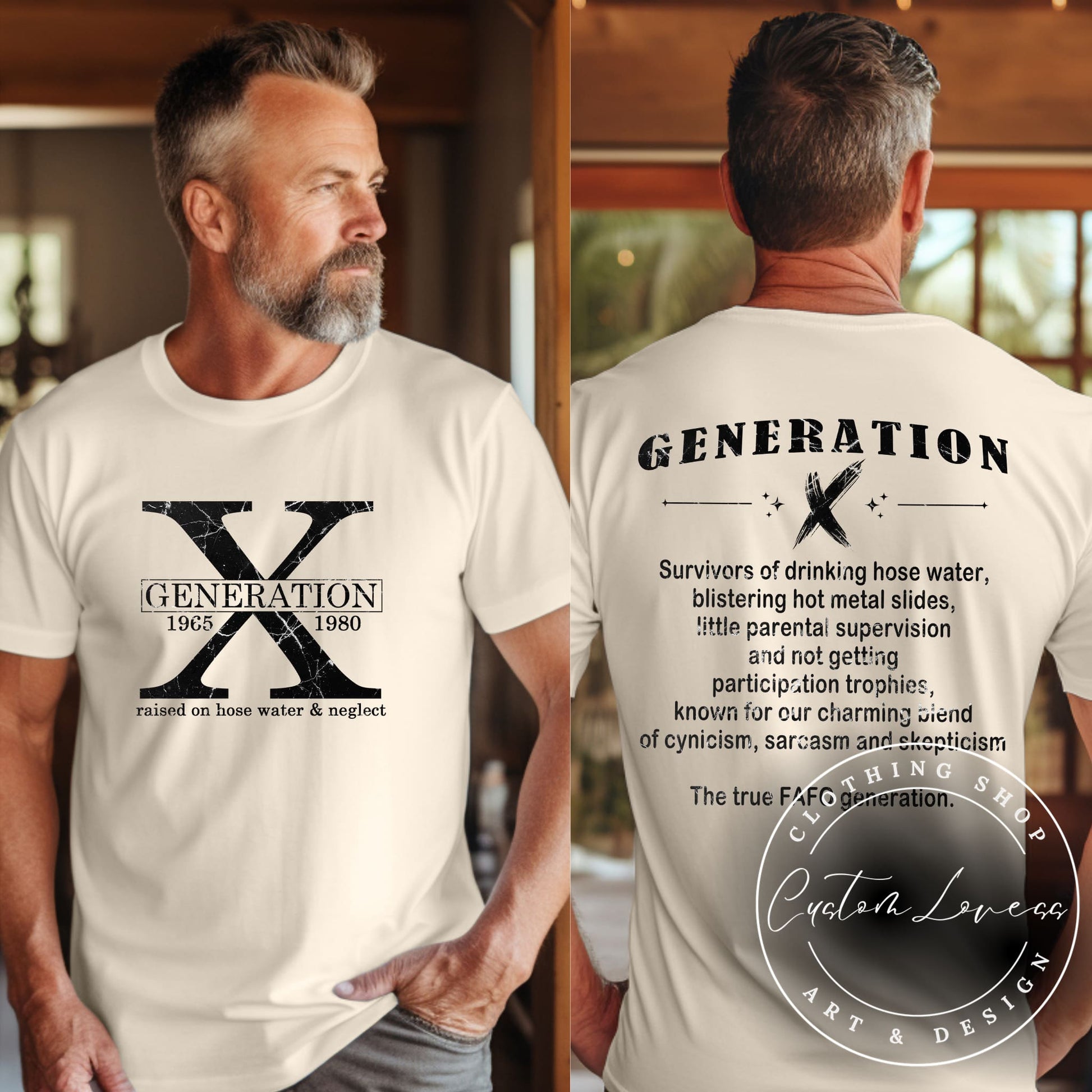 Step back in time with our Vintage Gen X T-Shirt, capturing the unique humor and nostalgia of the Generation X era. Featuring the witty slogan "Raised On Hose Water and Neglect," this shirt perfectly encapsulates the experiences and culture of those who grew up in the '70s and '80s.
