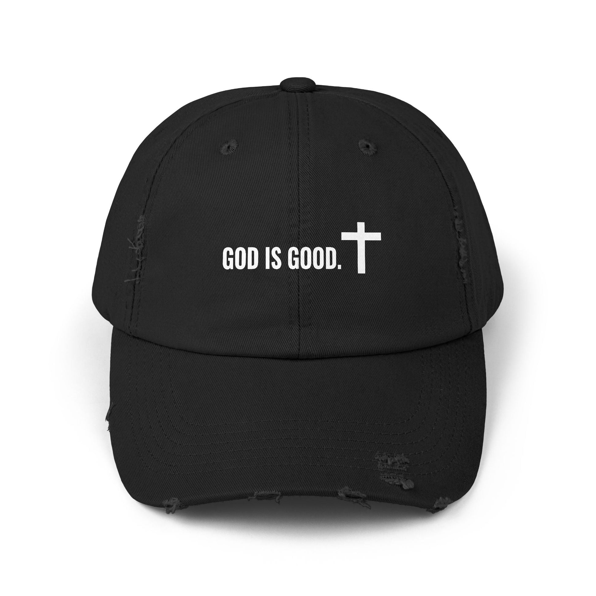 This distressed cap with the quote "God is Good" and a cross design exudes a vintage and religious vibe. Perfect for everyday wear, this comfortable and stylish cap is relevant to Christians looking for a subtle way to express their faith. Ideal for religious gatherings, church events, and casual outings.